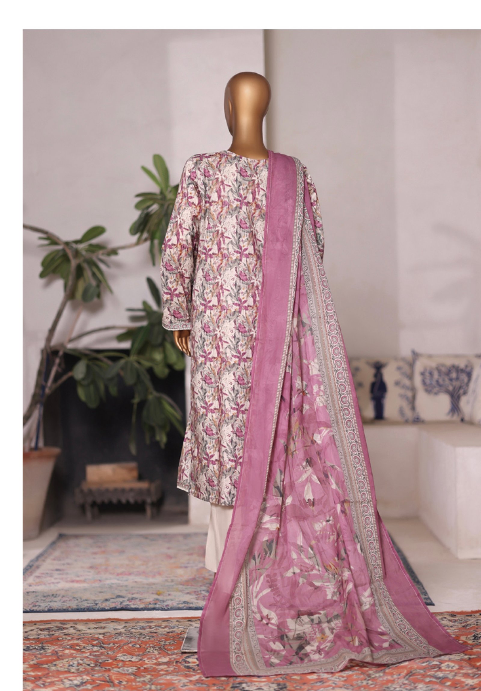 Bin Saeed Printed Cambric Stitched 3 Piece Suit Mid-Summer Collection – D01