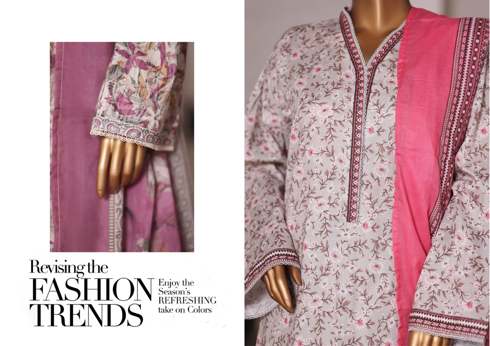 Bin Saeed Printed Cambric Stitched 3 Piece Suit Mid-Summer Collection – D08