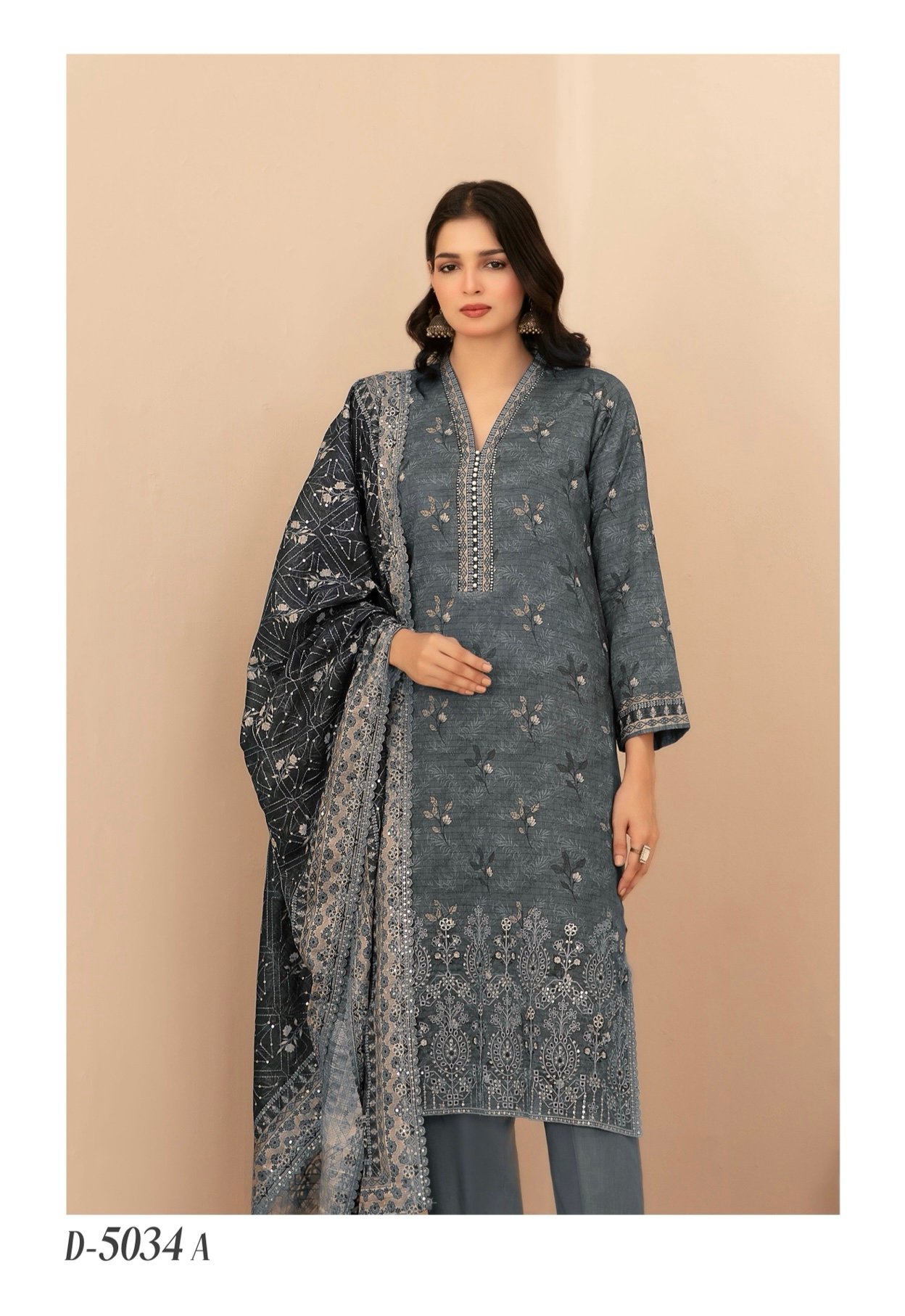 Rumeha By Tawakkal Fabrics – Unstitched Premium Embroidered 3 Piece Lawn Collection 2026 — D-5034A