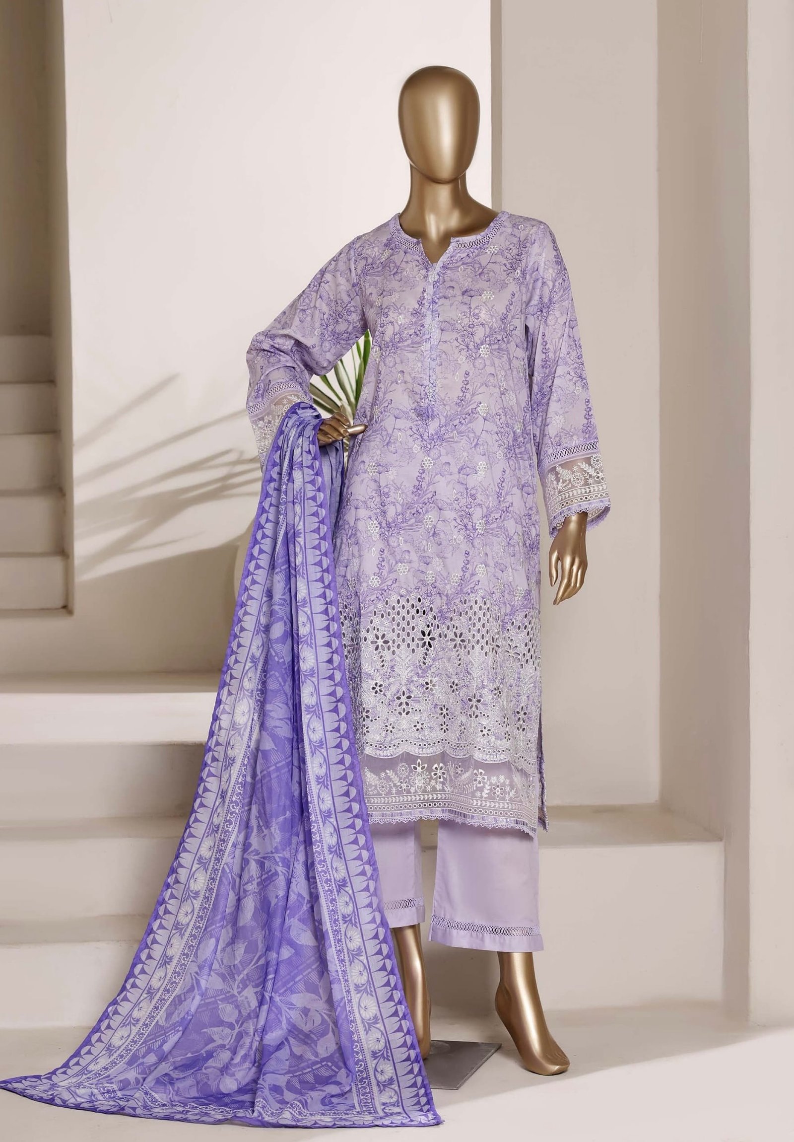 Shirt: Heavy embroidered digital printed stitched lawn shirt with intricate detailing for a luxurious appearance
