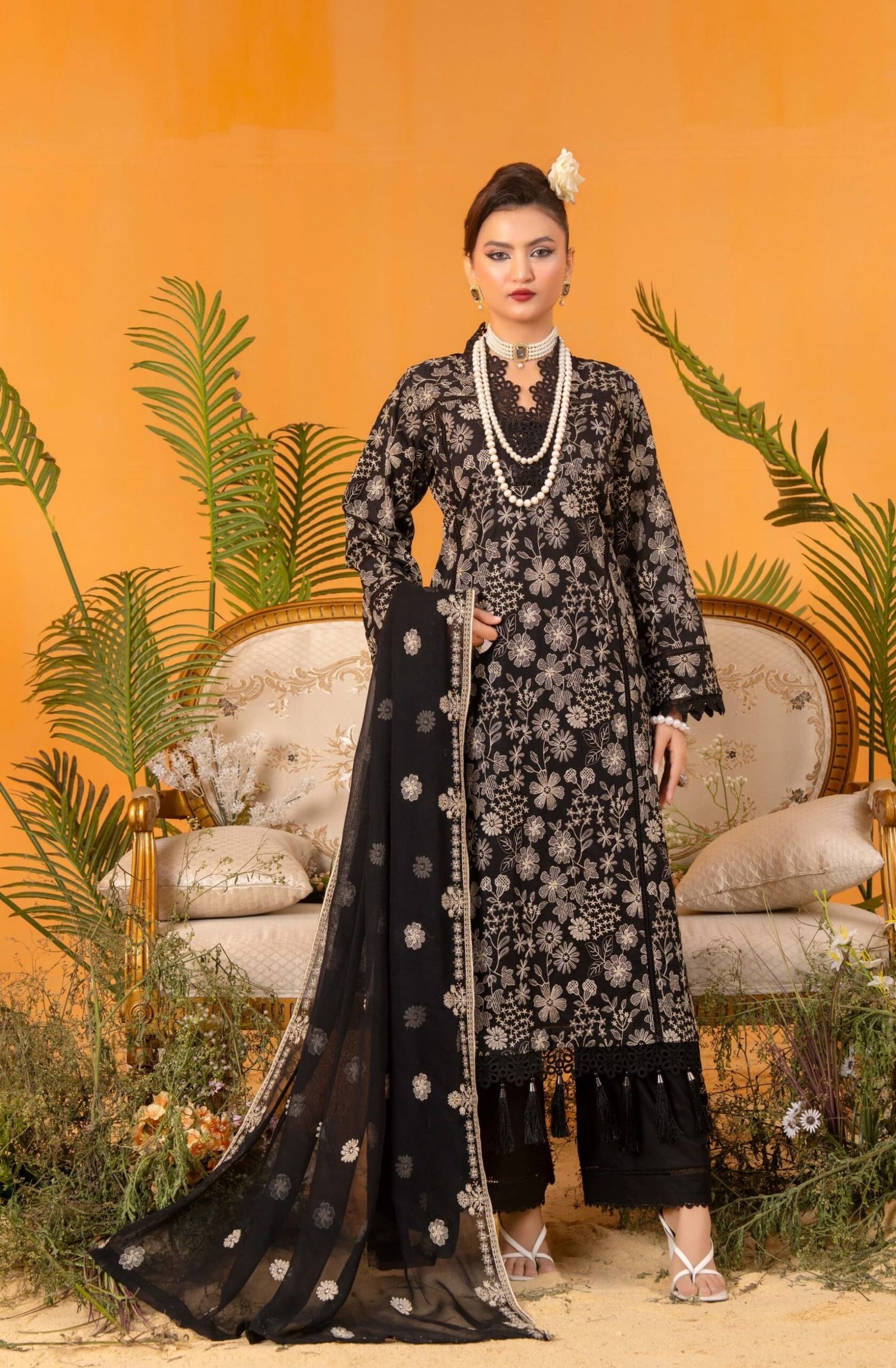 This beautifully crafted 3-piece suit features a full heavy embroidered lawn shirt that showcases intricate detailing and fine craftsmanship. Paired with a luxury crinkle embroidered dupatta, it adds a graceful and sophisticated touch to your overall look. The plain trouser ensures maximum comfort while balancing the heavily embroidered ensemble perfectly.