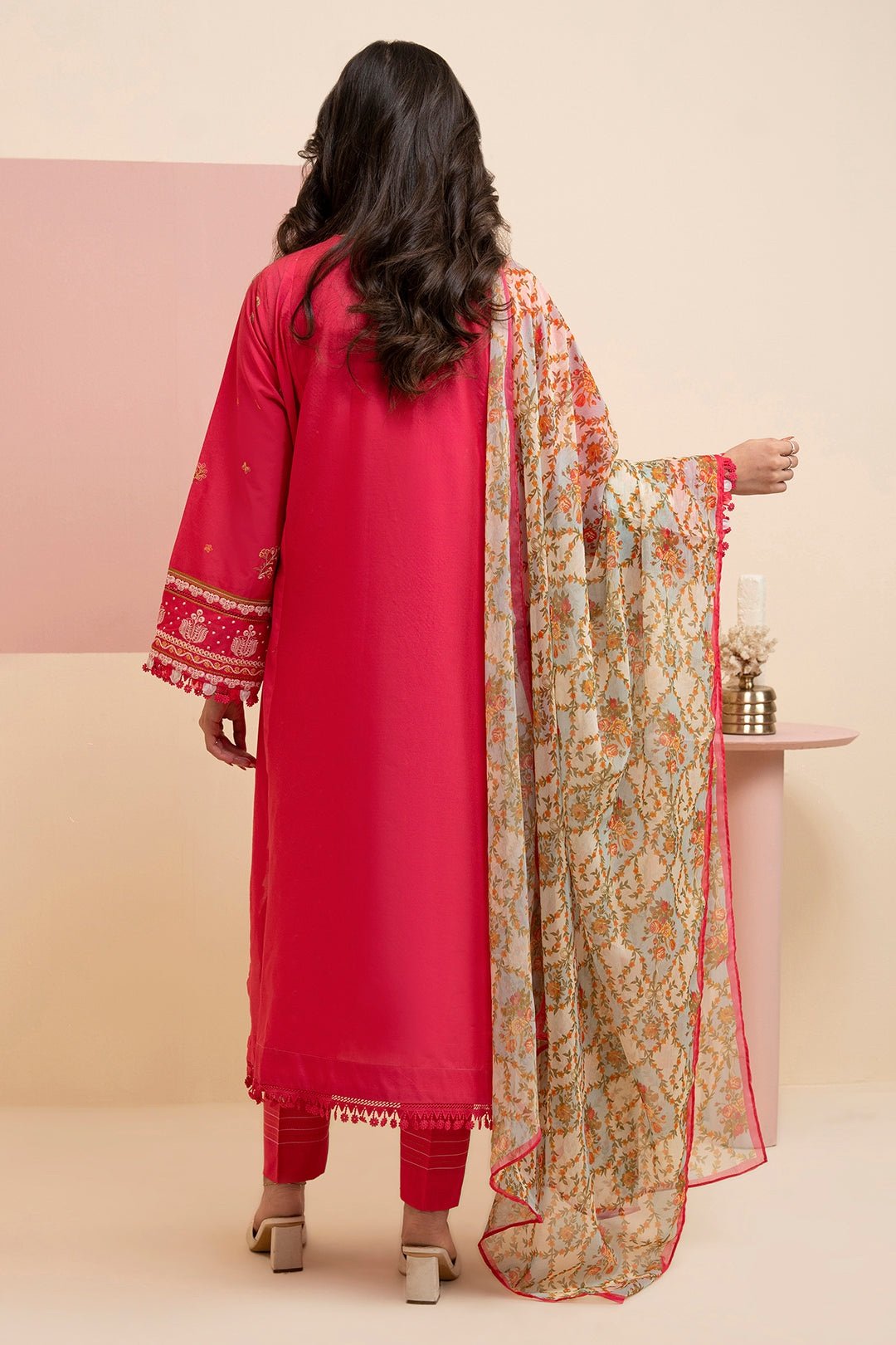 •Dupatta: Digital printed and Chikankari embroidered lawn dupatta, adding a touch of sophistication with vibrant patterns and refined embroidery.