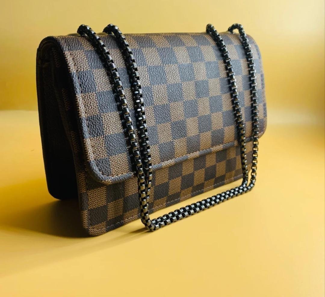 Add timeless elegance to your collection with this premium brown checkered shoulder bag. Designed with a classic textured pattern and paired with a sleek black chain strap, it offers the perfect blend of luxury and practicality. Despite its compact size (6 inches in height and 9 inches in width), the bag provides just enough space for your phone, wallet, keys, and small essentials — making it ideal for everyday use or evening outings. The durable faux leather ensures long-lasting quality, while the structured shape keeps your look polished and refined. Whether you’re heading out for a casual day, dinner, or a quick meetup, this chic shoulder bag elevates every outfit effortlessly.