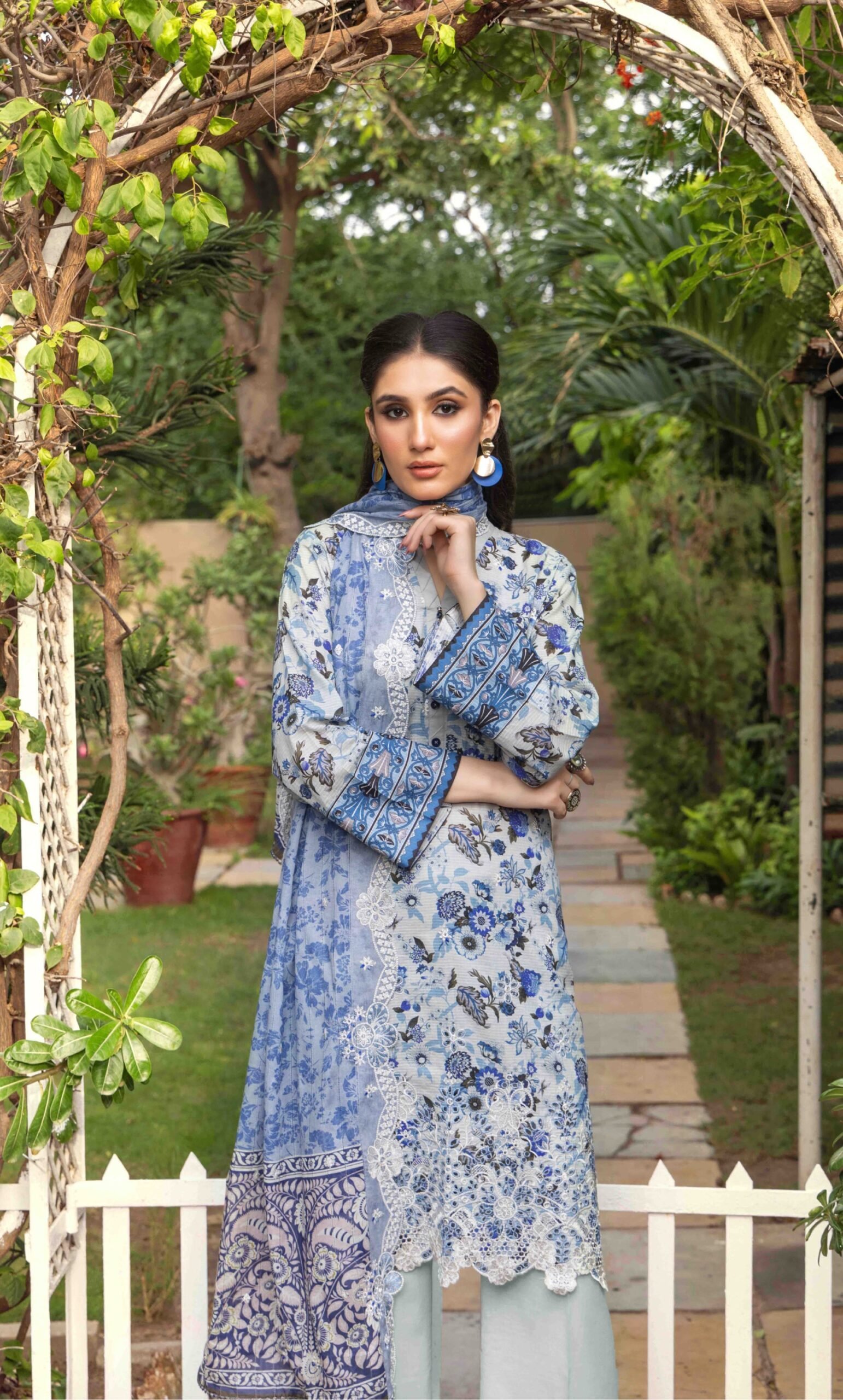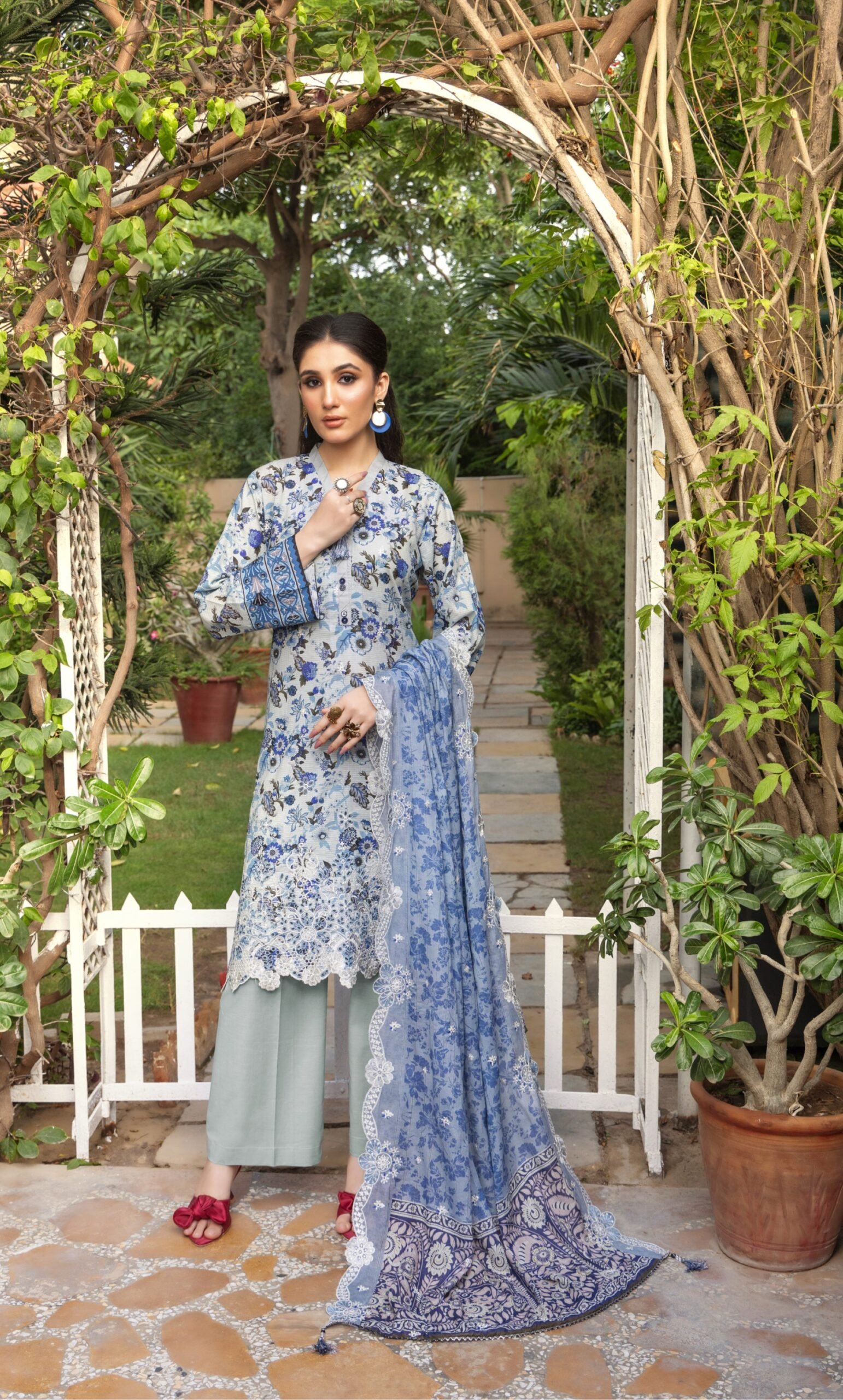 This stunning ensemble blends intricate ChikanKari embroidery with vibrant digital prints, creating a perfect balance of tradition and trend. The embroidered cutwork dupatta adds an elegant flair, while the cambric trousers ensure comfort all day long.