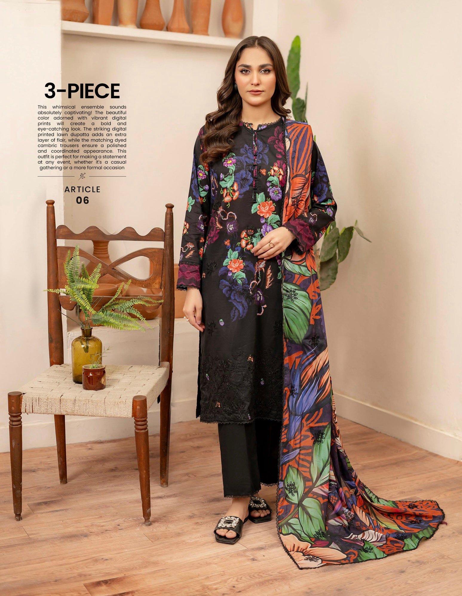 Digital Printed Lawn Embroidered 3-Piece Suit