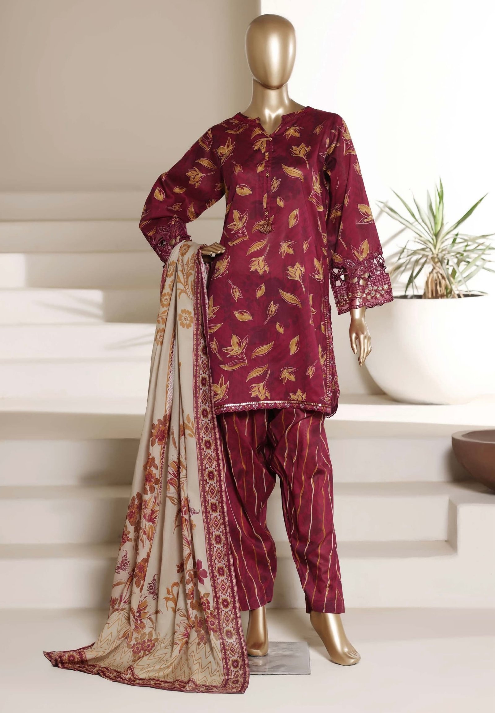 Upgrade your summer wardrobe with the elegant Malika By Sadabahar embroidered stitched 3-piece shalwar suit, now available at Mega Fabrics. Designed for modern women who love comfort with style, this outfit is perfect for casual wear, semi-formal gatherings, and everyday elegance.