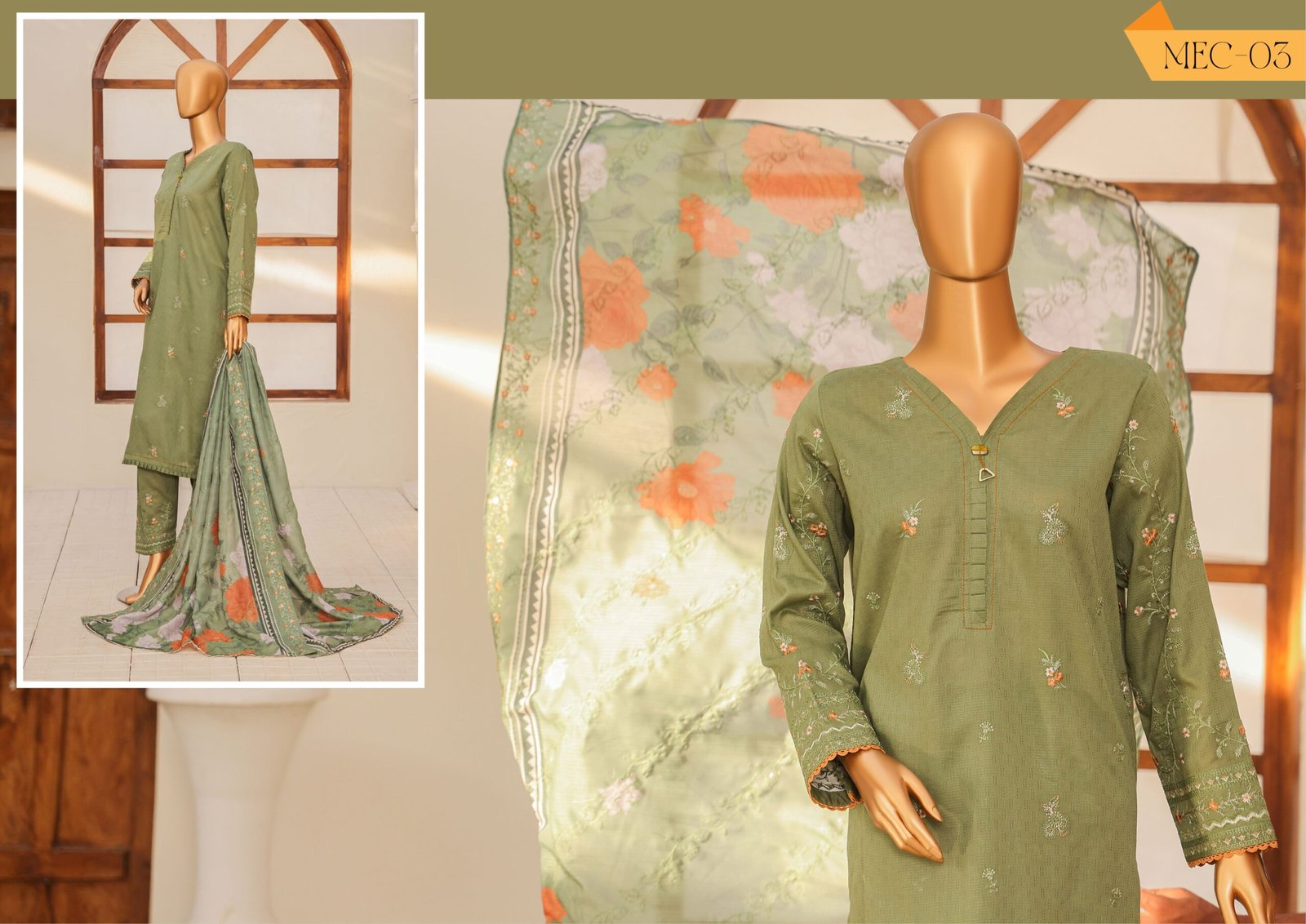 Perfect for gatherings, festive events, or everyday elegance, the Mayaar Embroidered Un-Stitched 3 Piece Collection is a must-have for women who love premium Pakistani fashion.