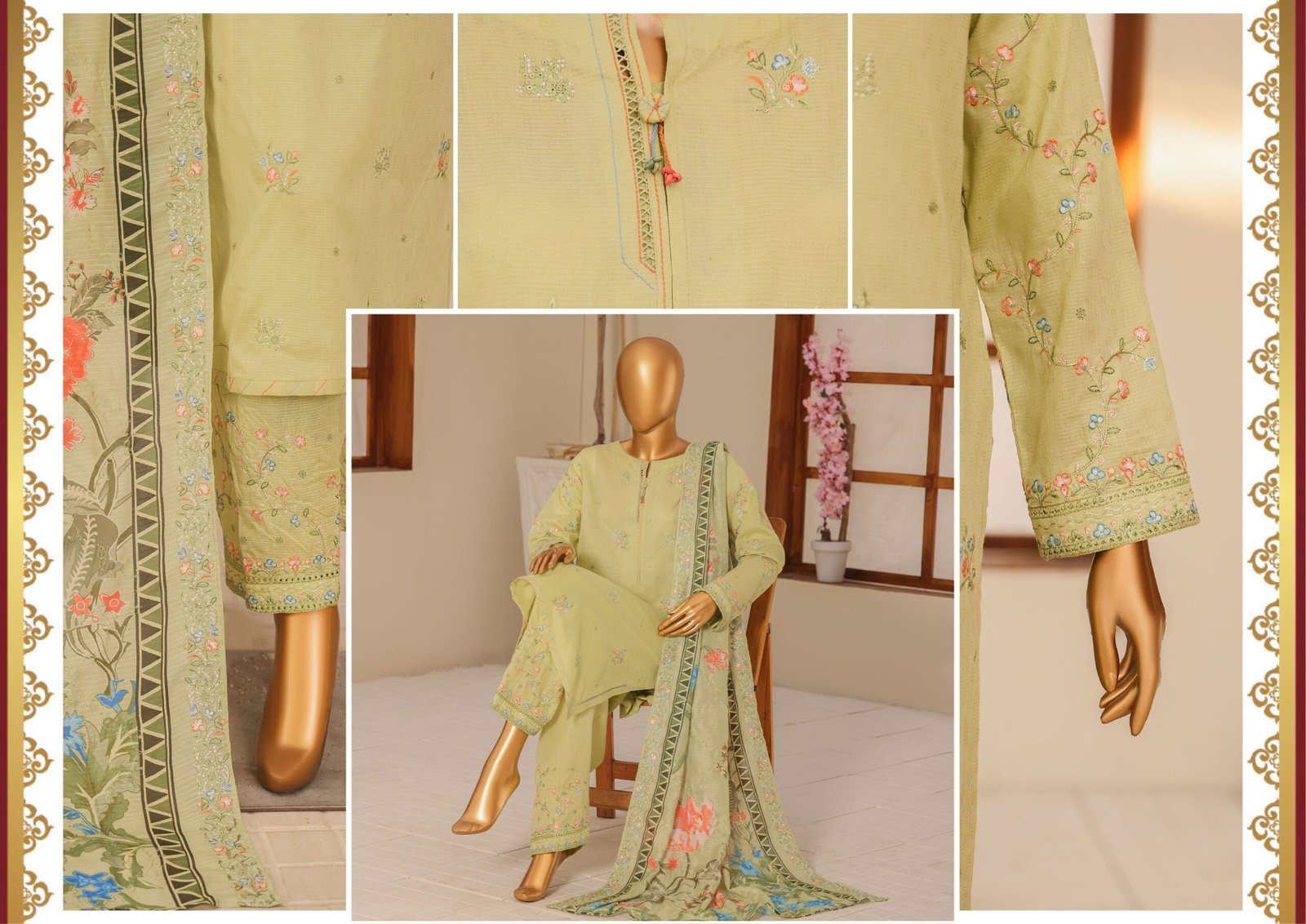 Perfect for gatherings, festive events, or everyday elegance, the Mayaar Embroidered Un-Stitched 3 Piece Collection is a must-have for women who love premium Pakistani fashion.