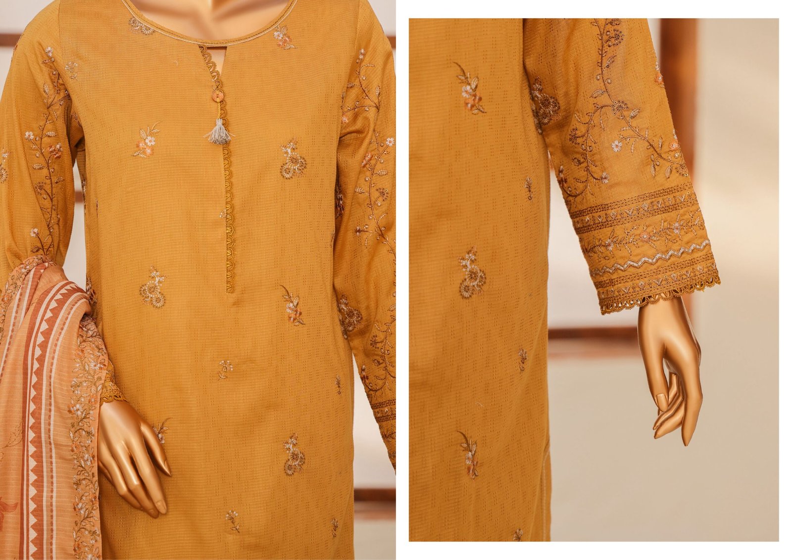 Perfect for gatherings, festive events, or everyday elegance, the Mayaar Embroidered Un-Stitched 3 Piece Collection is a must-have for women who love premium Pakistani fashion.