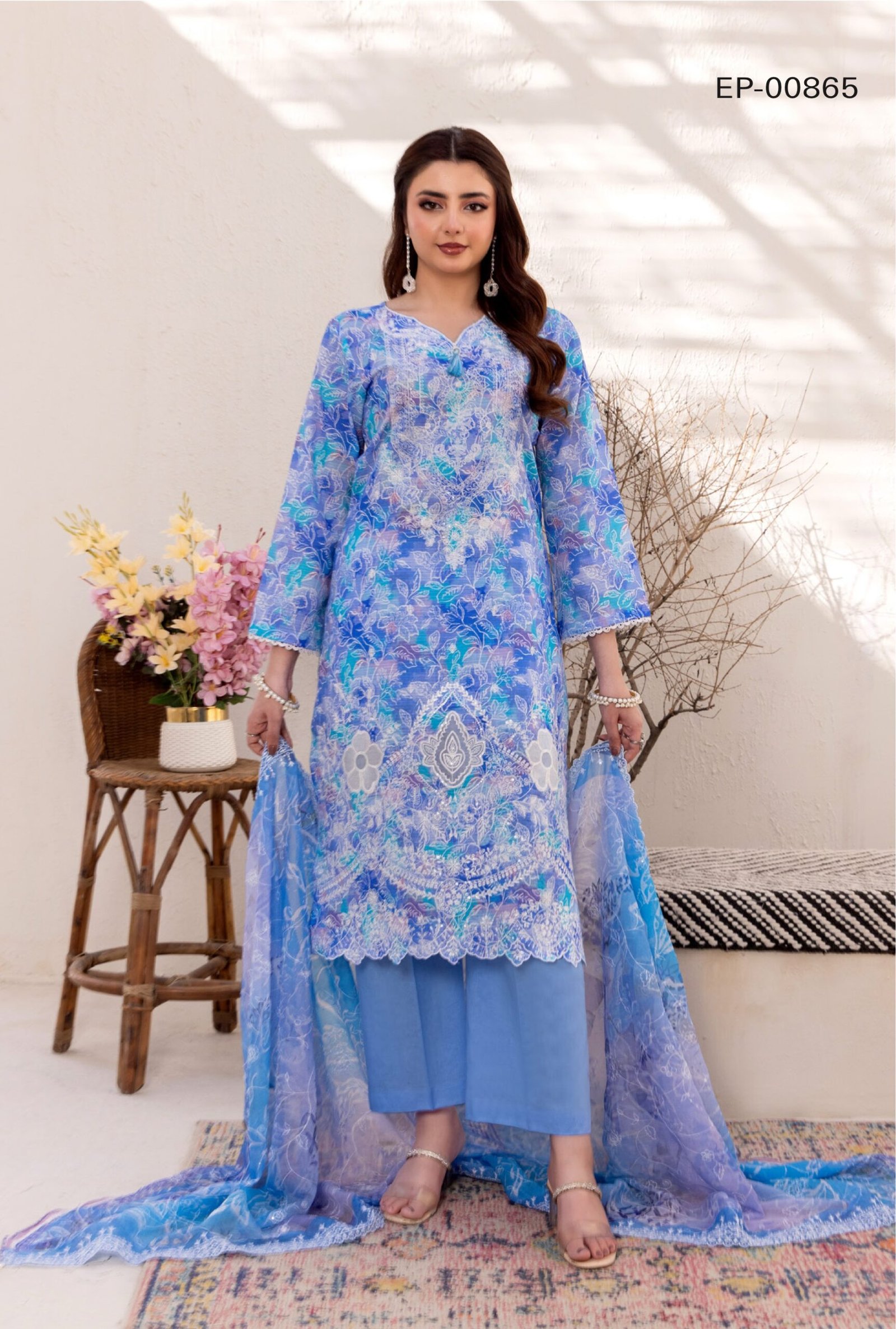 Comes with a cutwork + jhaal embroidered Bamber chiffon dupatta, offering a graceful drape and premium finishing.