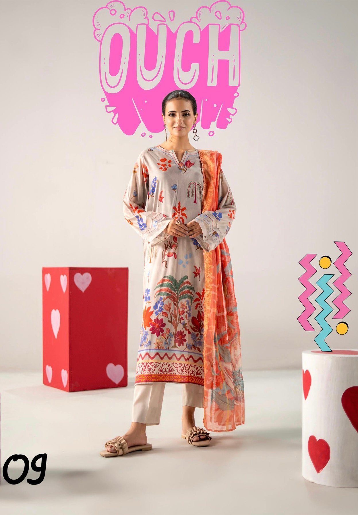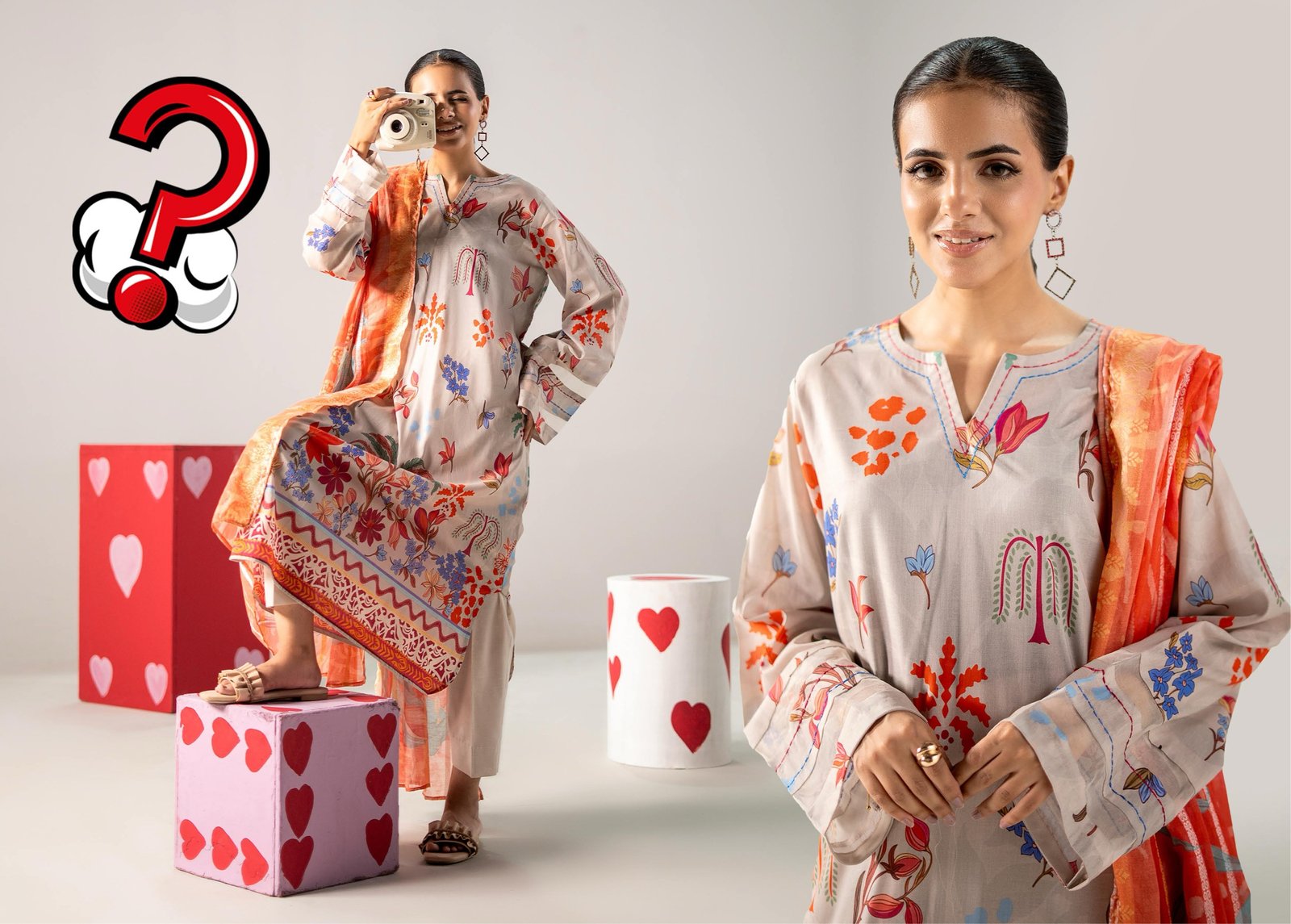 Shirt: Digital Printed Lawn – soft, breathable, and richly detailed prints for a luxurious look.