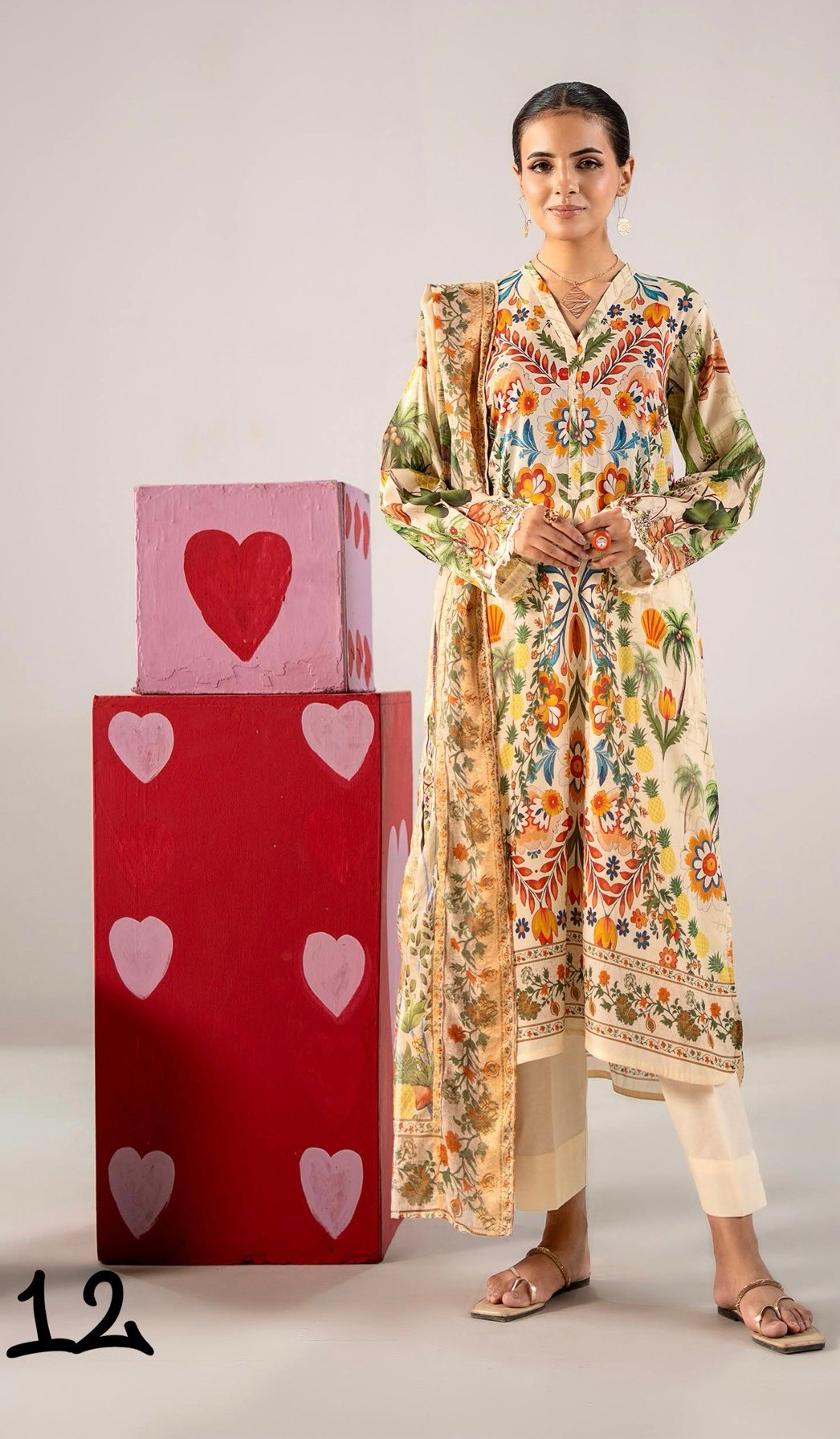 Shirt: Digital Printed Lawn – soft, breathable, and richly detailed prints for a luxurious look.