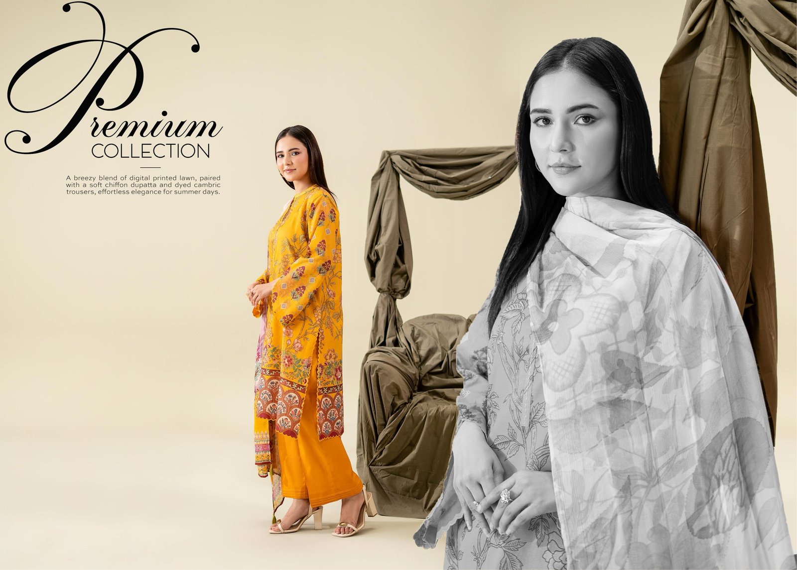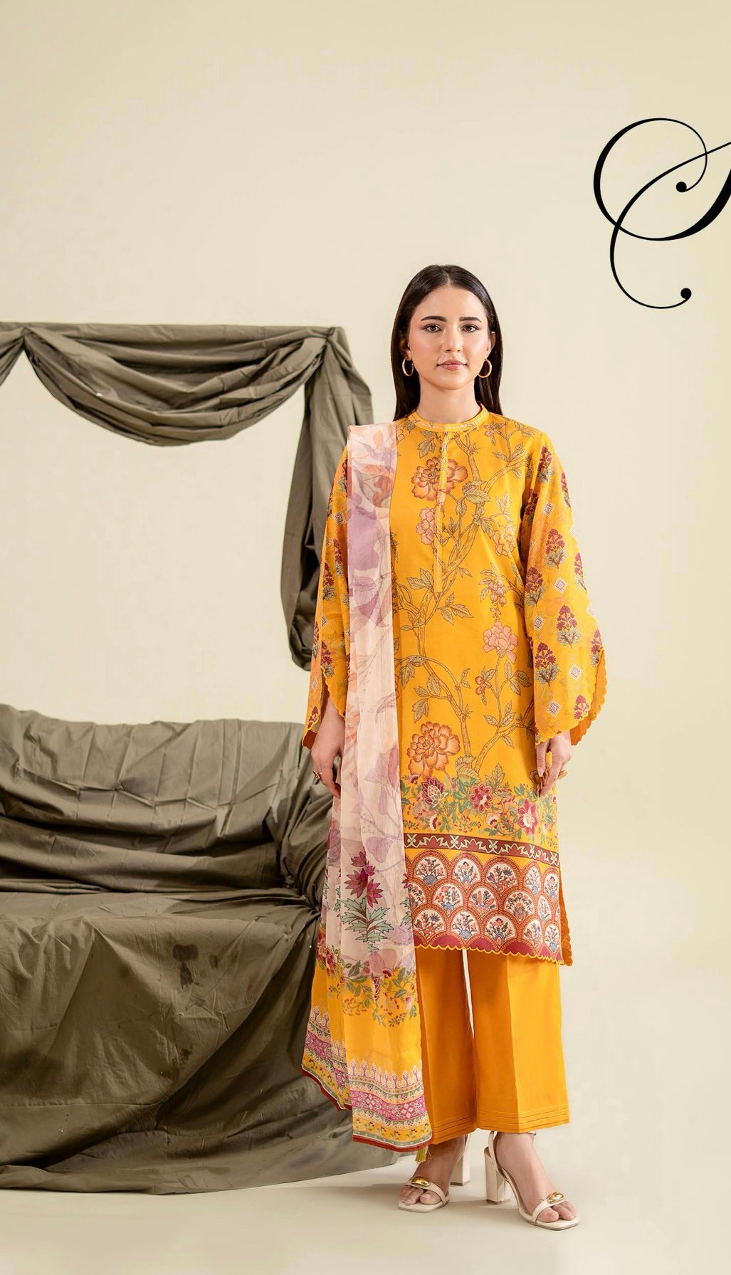 This 3-piece unstitched suit includes a beautifully crafted digital printed fancy lawn shirt for the front, complemented by a matching digital printed back and sleeves. The outfit is paired with a graceful digital printed Bamber chiffon dupatta, adding a soft, flowy touch to your overall look. Completing the ensemble is a dyed cambric cotton trouser, ensuring comfort and durability throughout the day.