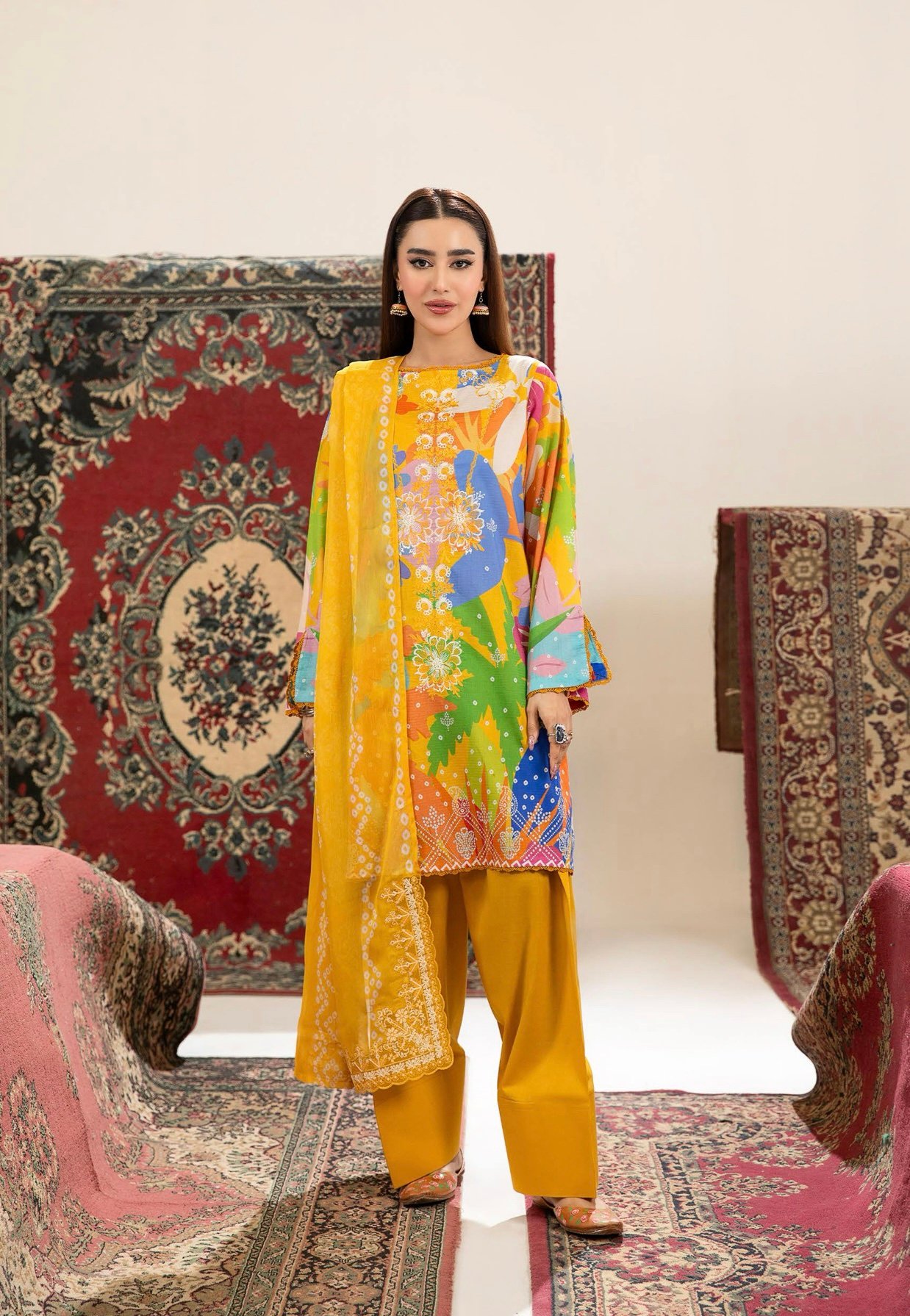 Step into elegance with the Premium Zariyab by Gull Jee, a luxurious unstitched 3-piece lawn suit designed for women who appreciate fine craftsmanship and timeless style. This exclusive collection blends digital prints with intricate embroidery, making it a perfect choice for summer wear, festive occasions, and casual sophistication.
