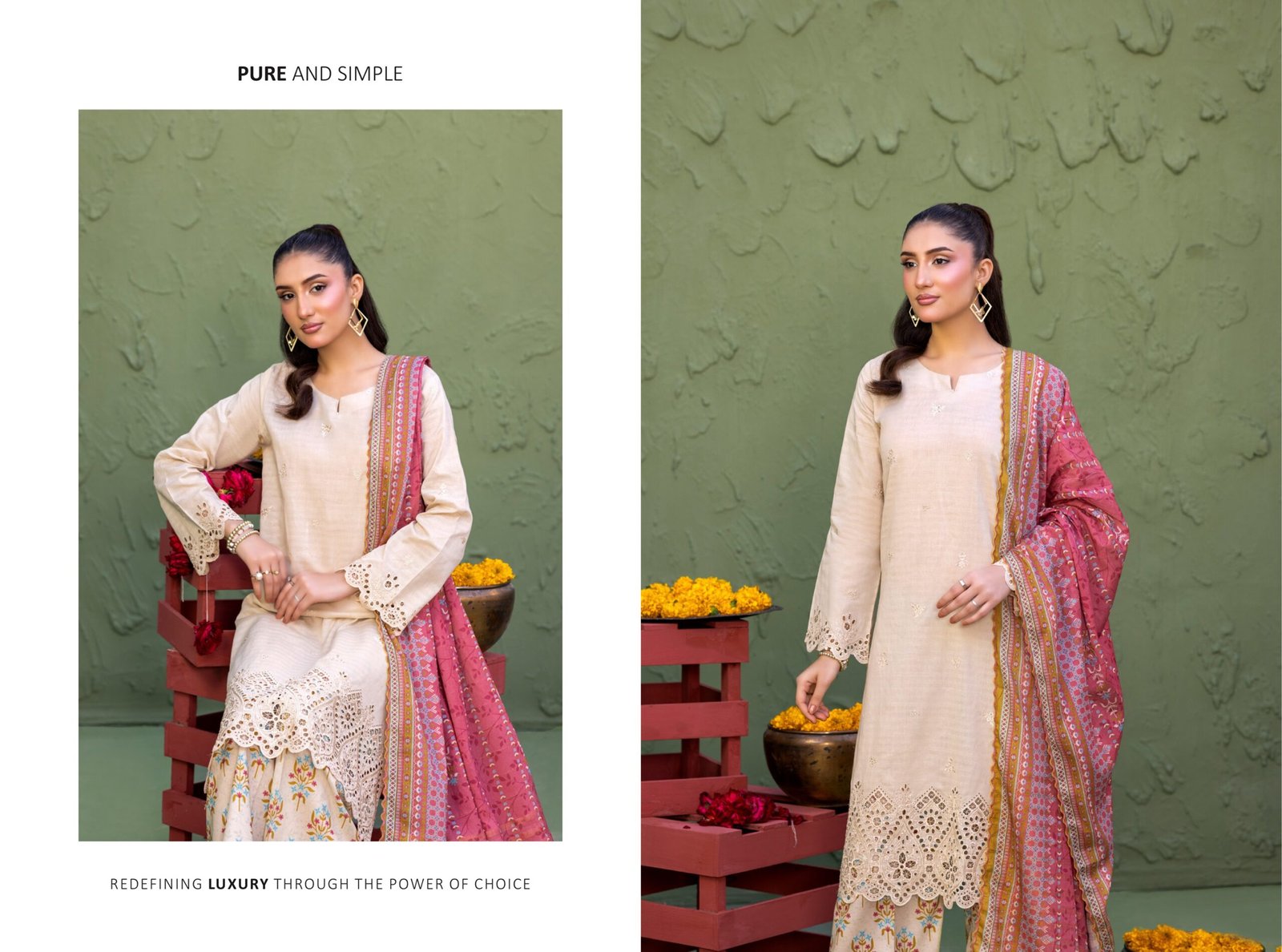 Step into timeless elegance with Rekhakari by ELAYA PRINTS, a perfect blend of traditional craftsmanship and modern luxury. This premium unstitched embroidered 3-piece suit is designed for women who appreciate refined details and contemporary style.