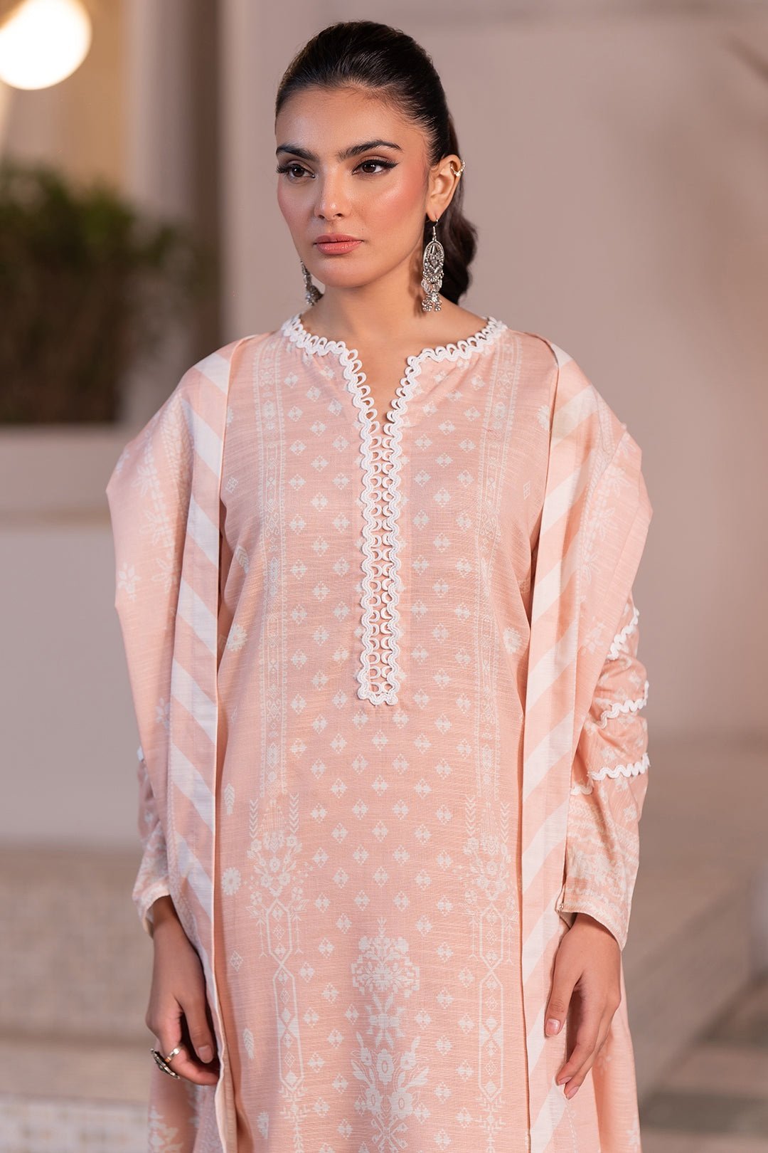 Paste Printed Khaddar Dupatta (2.5 M): Lightweight and versatile, perfect for stylish draping.